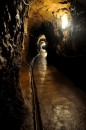 Rozpraszające mrok lampy oświetlają fragmenty skalistych stropów, odkrywają małe jeziorka o krystalicznej, zimnej wodzie, ukazują pozostałości ludzkiej aktywności. Ciekawie wyglądają ułożone z bali podpory stropów, pokryte białymi naroślami, przypominającymi grzyby lub rośliny. Ich rolą było ostrzeganie (trzeszczały pod naciskiem skał) o obsuwaniu się stropu.