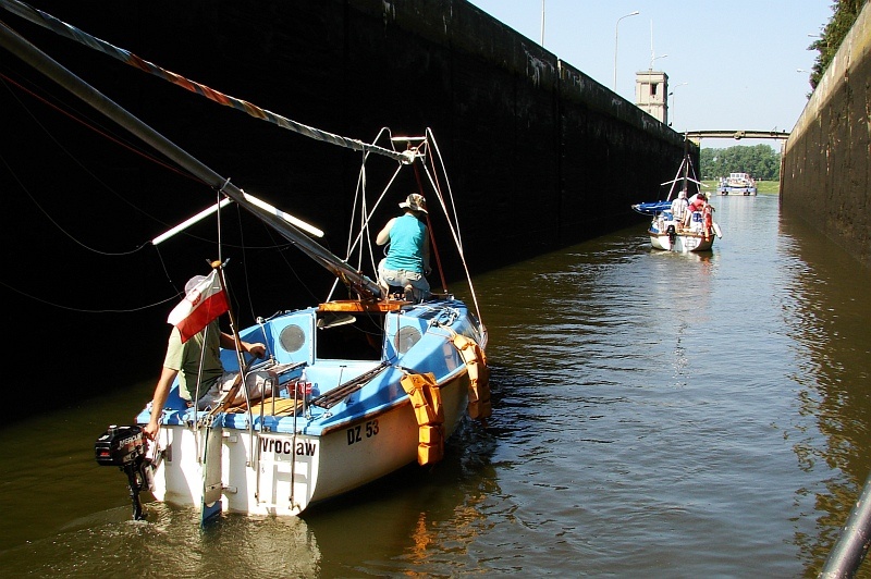 Około 7 km od Portu Uraz, z którego wyruszyli wrocławscy żeglarze, uczestnicy Flisu Odrzańskiego 2012, na rzece zrobił się tłok. To znak, że zbliżamy się do śluzy – fragmentu rzeki , na której usytuowano kanał przegrodzony komorą. Obecność śluz – budowli hydrotechnicznych na rzekach, kanałach, czasem między jeziorami, jest niezbędna wszędzie tam, gdzie do pokonania jest różnica poziomów wody.