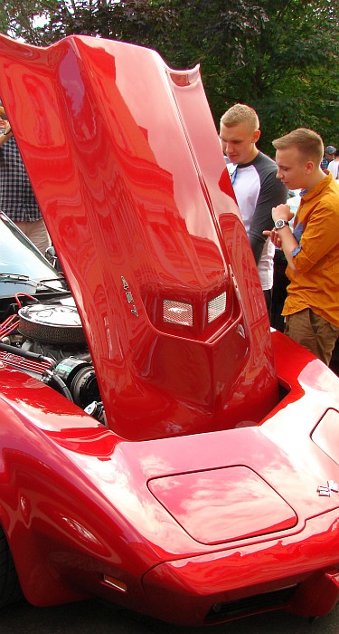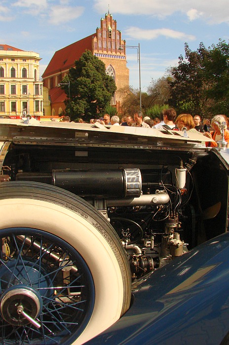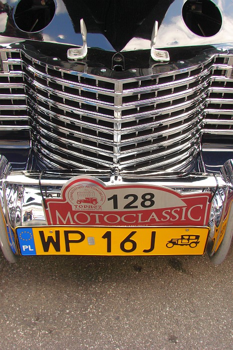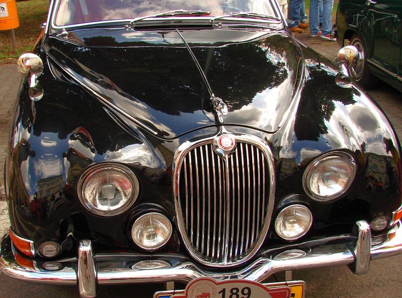 Impreza przyciąga wielu widzów, w każdym wieku. Mężczyźni zaglądają pod maski wypielęgnowanych pojazdów, kobiety robią sobie pamiątkowe zdjęcia z elegancką sylwetką drogiego auta w tle. Dzieci najchętniej usiadłyby za kierownicą, udając prawdziwą jazdę. W sporym tłumie, oblegającym zabytkowe cuda techniki motoryzacyjnej, trudno się przecisnąć z aparatem i objąć kadrem całe auto, nie „łapiąc” przy tym czyjejś dłoni, łokcia, buta czy wycelowanego w przeciwnym kierunku aparatu. Dlatego w mojej fotoimpresji z pokazu najwięcej jest detali, które przyciągają wzrok swoim niekłamanym pięknem i pomysłowością. Ot, choćby taki jaguar.