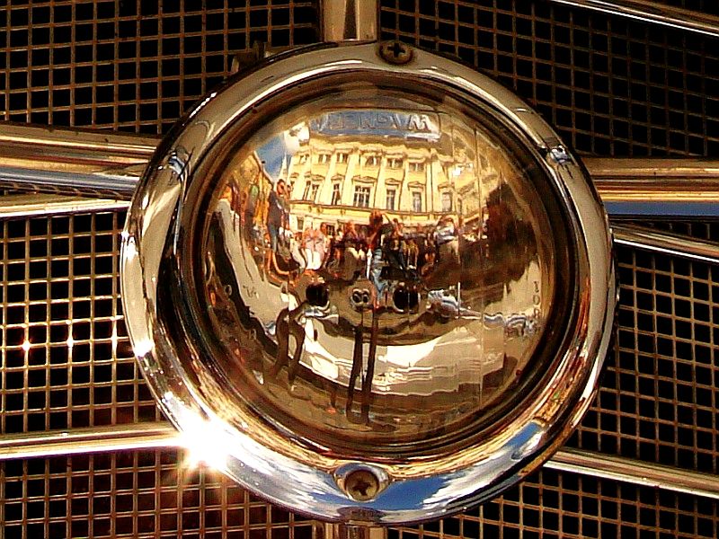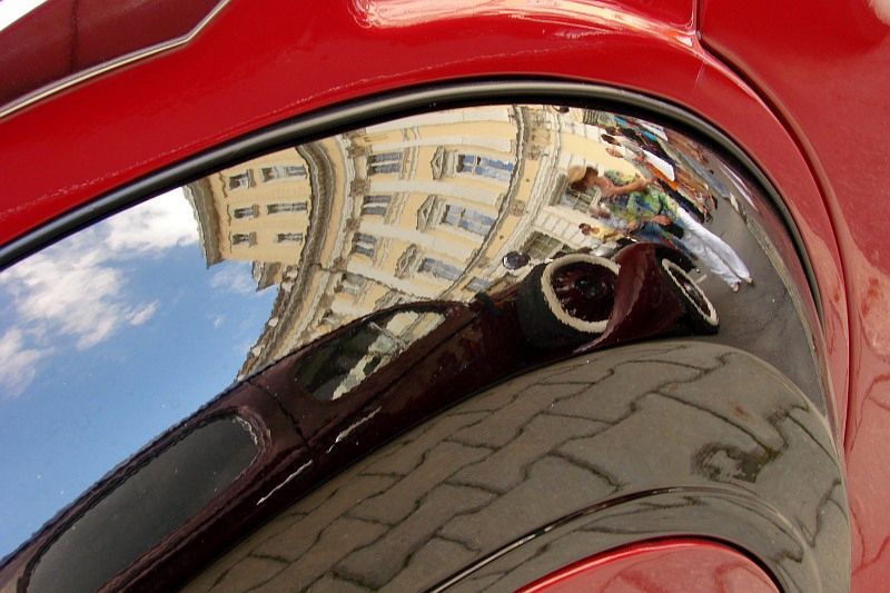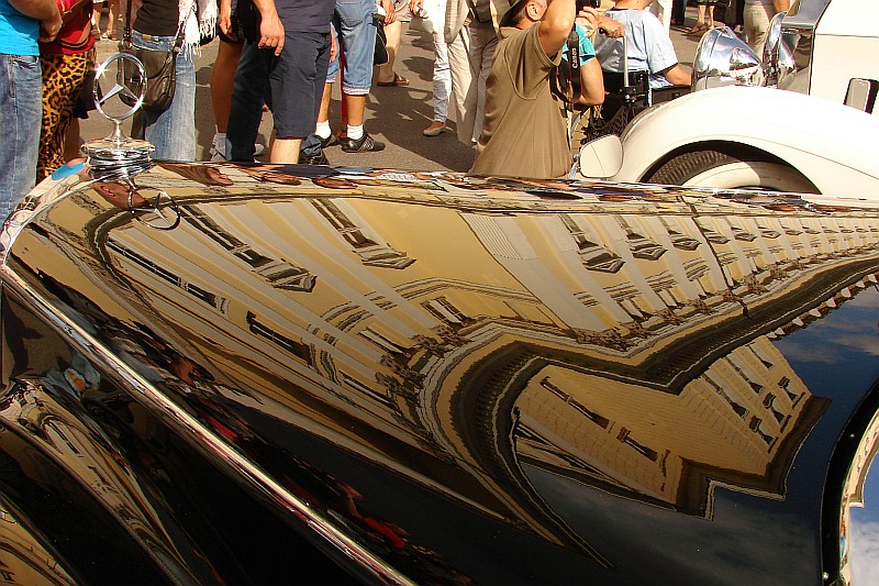 Przy dobrej pogodzie, dodatkową atrakcją wizualną są lustrzane odbicia nieba, ludzi i obiektów architektonicznych w wypolerowanych karoseriach aut. Bez fotomontażu, bez nakładania warstw w programie graficznym uzyskujemy zaskakujące efekty – obrazy świata równoległego.