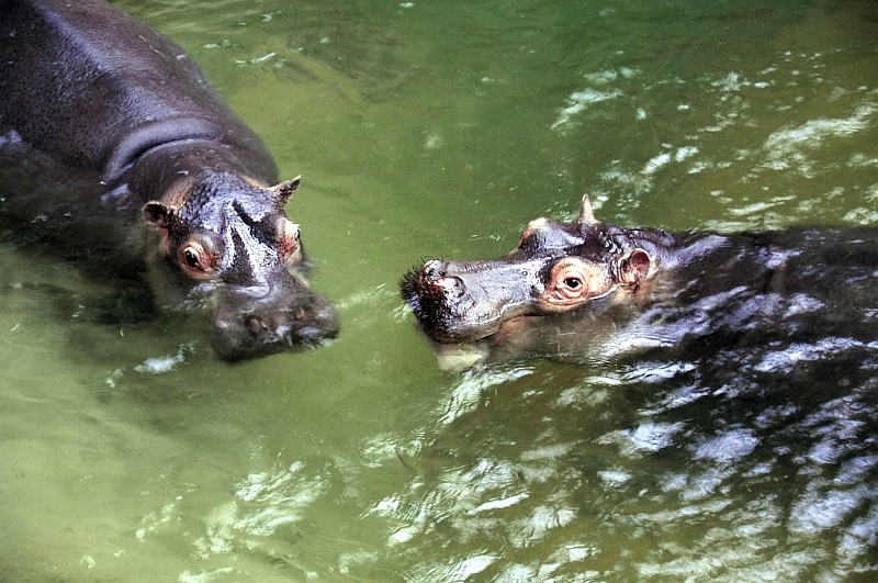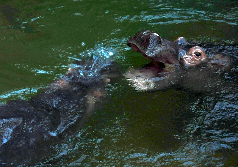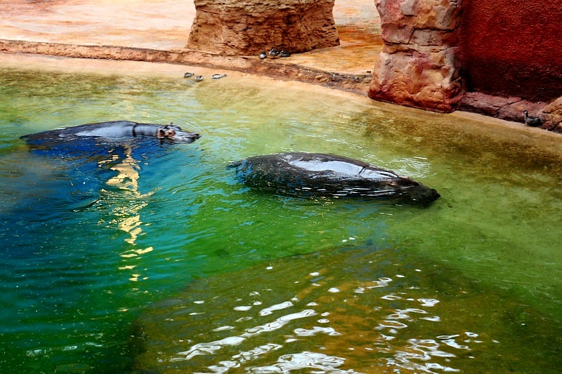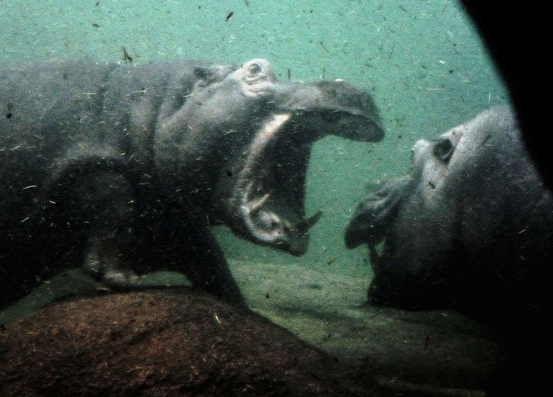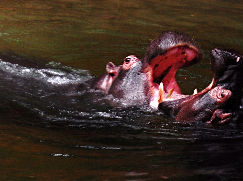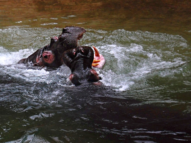 Na postrzeganie niektórych zwierząt duży wpływ ma literatura i filmy. Także te dla dzieci. To z popularnych kreskówek Hanna-Barbera czy filmów Disneya zostało we mnie przeświadczenie, że hipopotam, to zwierzątko ospałe a z racji swojej wagi i postury mało ruchliwe. Dlatego największym zaskoczeniem w Afrykarium był widok walczących ze sobą hipopotamów.