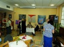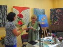 Uczestnicy spotkania mieli sposobność wysłuchania fragmentów książek wydanych na przestrzeni lat – powieści, opowiadań, wierszy i aforyzmów. Pasje malarskie symbolicznie reprezentowały strelicje królewskie, ulubiony temat obrazów Izabelli. Przykłady innych prac zostały pokazane w formie pocztówek, rozłożonych na stolikach. Razem z bukiecikami kwiatów, ciasteczkami i białymi obrusikami, ułożonymi przez gospodarzy Klubu Seniora, tworzyły barwny wystrój klubowej sali i budowały domowy klimat spotkania.