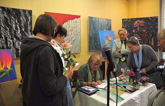 Spotkania wcale niełatwego dla pisarki i poetki. Wśród słuchaczy były bowiem także panie poetki i panowie poeci. Jednak to nie dociekania krytyczne i analityczne zdominowały pytania i wypowiedzi słuchaczy. Przeważała postawa uznania i wdzięczności dla autorki – kobiety, która poprzez swoje szczere aż do bólu opowiadania o życiu w obcym kraju i dążeniu do samorealizacji uświadomiła innym starą (chyba zapominaną) prawdę, że każdy jest kowalem swojego losu.