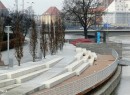 Betonu jest faktycznie sporo. Po wycięciu rosnących tu drzew i krzewów posadzono drzewka zastępcze. Wyglądają nieco rachitycznie. Ale poczekajmy na prawdziwą wiosnę. Może się zazielenią i ubarwią te szare połacie betonu.