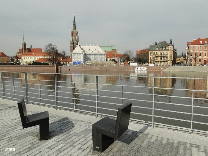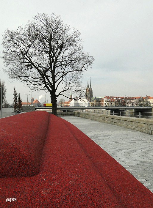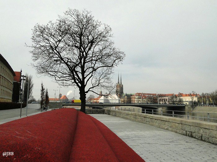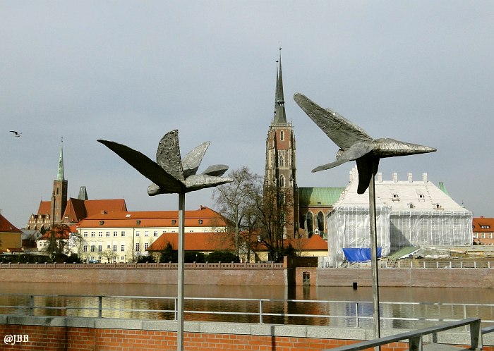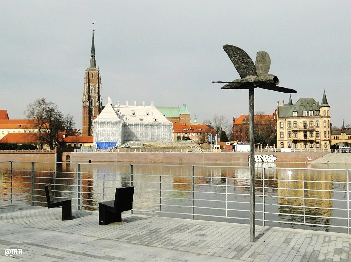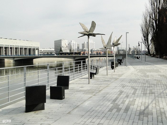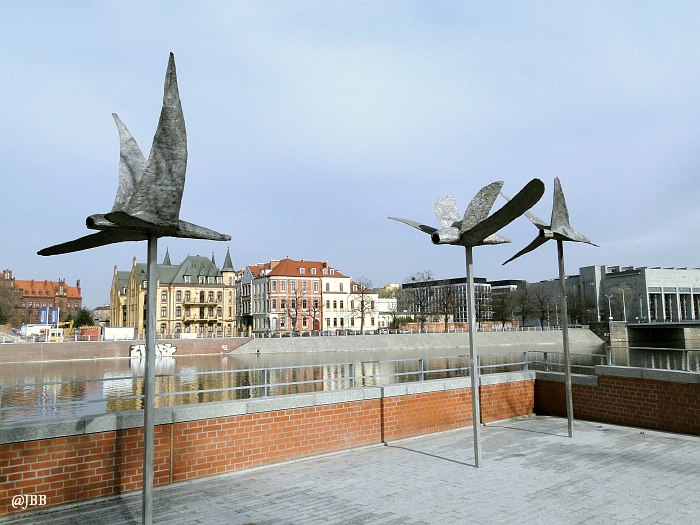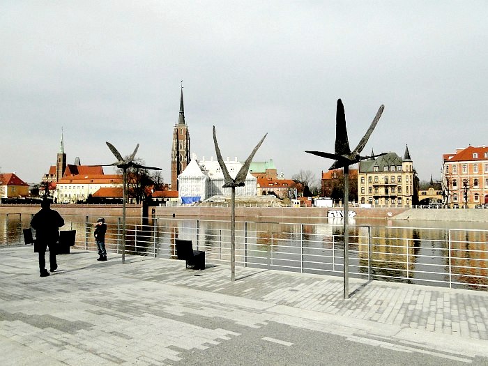 Dobrym pomysłem jest wykorzystanie skweru za muzeum na wystawy plenerowe. Natomiast kiepskim, moim zdaniem, jest stawianie eksponatów w miejscu, z którego rozciąga się panorama na malowniczy Ostrów Tumski. „Ptaki” – bo o nich mowa – to aluminiowe rzeźby Magdaleny Abakanowicz, które „przyfrunęły” na bulwar z ulicy Świdnickiej. Toporne, bardziej przypominają samoloty, niż ptaki. Daleko im do lekkości mew, które nad nimi przelatują. Moim zdaniem szpecą krajobraz.
