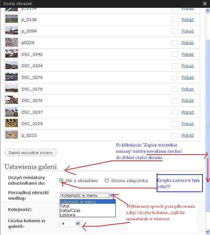 Proces wstawiania galerii zdjęć jest podobny, tylko w miejsce jednego zdjęcia pobieramy z katalogu komputera całą grupę i kończymy kliknięciem na przyciski Zapisz wszystkie zmiany i Wstaw galerię.