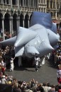 Piękna katedra, kojarząca się z Notre Dame w Paryżu, wspaniałe detale, witraże, rzeźby… Manifestacja równie ciekawa – kolorowa i radosna. W głowę zachodzę, co przedstawiają te nadmuchane, wielkie poduchy…To zwierzak jakiś?