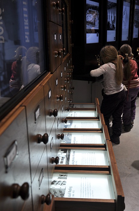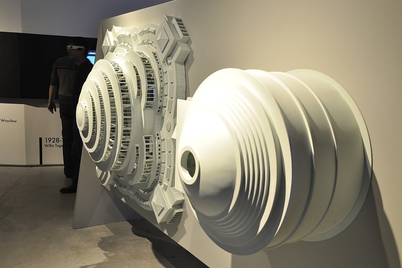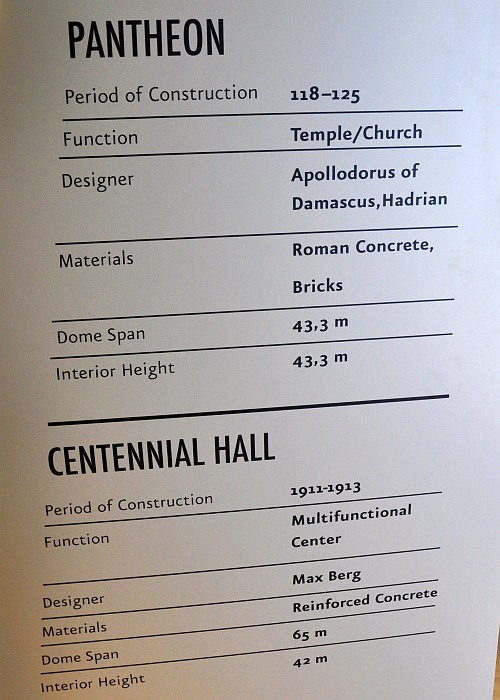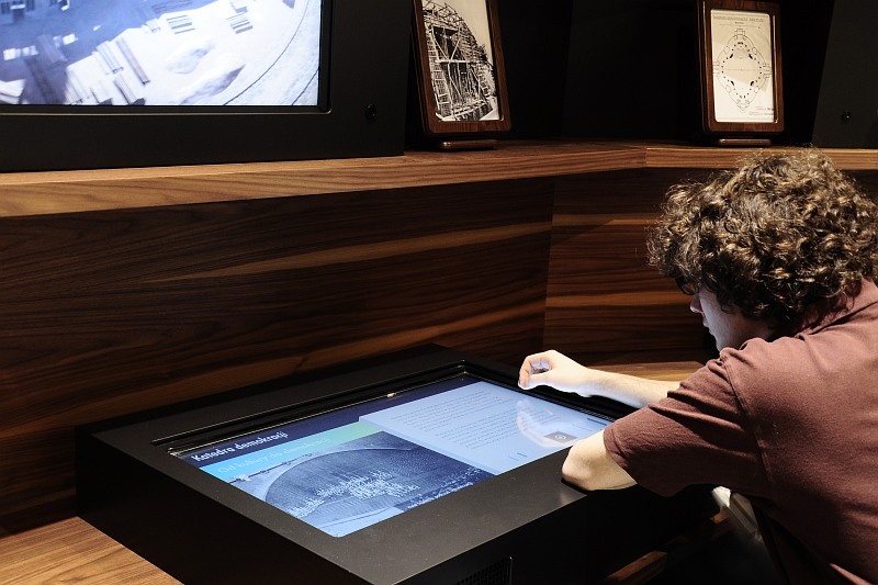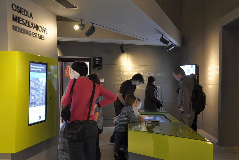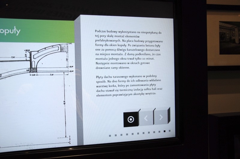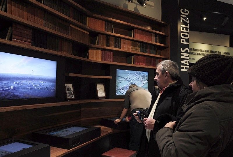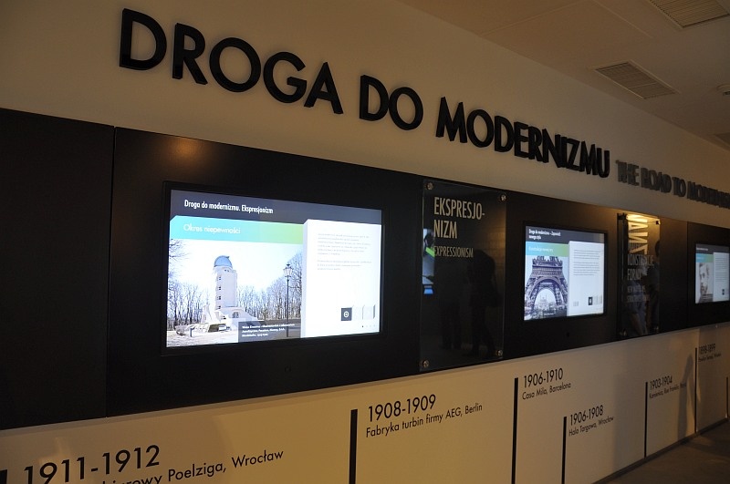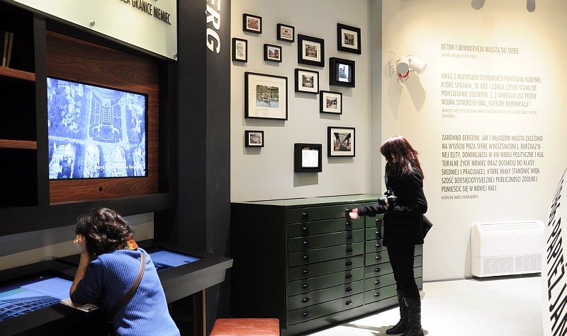 i rozrywkę w dobrym stylu. Wystawa została podzielona na sale: Visitor Center, Pokój Historyczny, Pokój Edukacyjno – Poznawczy i Galerię. Nowoczesna aranżacja i multimedialne prezentacje nie burzą wrażenia, że wchodzimy w domowe zacisze kolekcjonera pamiątek. Przepastne komody kryją w szufladach życiorysy naukowców i architektów. W tej sali poznamy twórców imponującej budowli – Maksa Berga oraz Hansa Poelziga, autora planu zagospodarowania otoczenia i Pawilonu Czterech Kopuł.