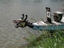 W tumanach kurzu dojechaliśmy do parkingu przygotowanego przez organizatorów Festiwalu na Odrze „Piana Bosmana”. Na cyplu Zwierzyniec Duży przygotowano sporo atrakcji dla dorosłych i dla dzieci. Na scenie występowały zespoły muzyczne, m.in. znany zespół Zejman & Garkumpel. Przygotowano stoiska małej gastronomii i stoliki pod parasolami.