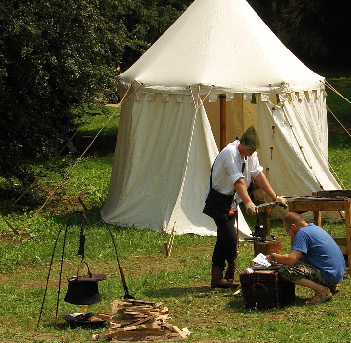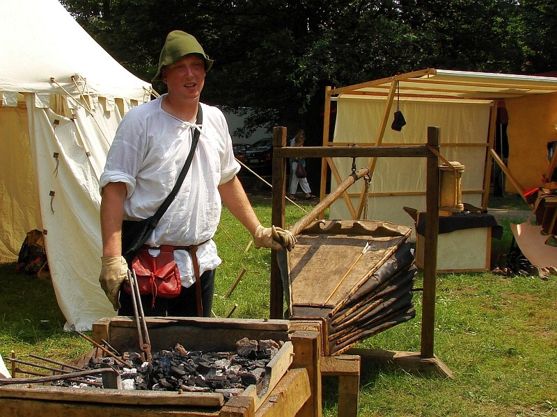 Płatnerz, reprezentujący Pracownię Płatnerską LORENZ A. Sacherski z Legnicy, zademonstrował rozniecanie ognia oryginalnym miechem i przygotowanie żelaza do obróbki. Opowiadał o charakterystycznych elementach zbroi, które, jak np. hełmy, rzemieślnicy modyfikowali na przestrzeni wieków, doskonaląc ich właściwości ochronne.