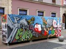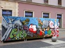 Historyczne graffiti, namalowane (naspreyowane) na specjalnie przygotowanej ściance, można oglądać na ulicy Świdnickiej, przed witryną poczty.