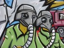 Artyści podczas malowania graffiti i wywiad z Juliuszem Woźnym w filmie TVN :