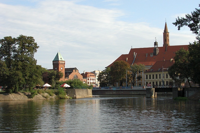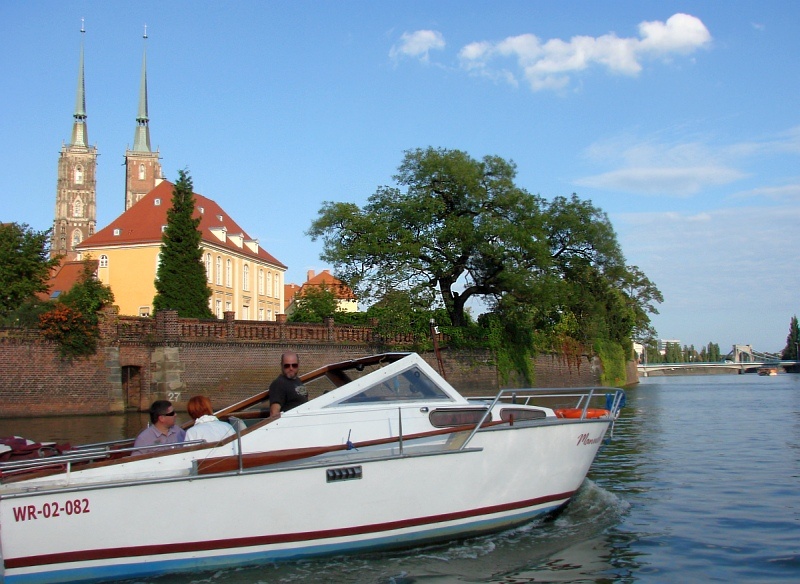 Od strony wody Wrocław prezentuje się bardzo okazale. Przede wszystkim widać, jak wiele zabytkowych obiektów odremontowano. I chociaż, niejednokrotnie, mają przeszło 100 lat, nadal pełnią użyteczne funkcje: Hala Targowa, Most Piaskowy, Uniwersytet Wrocławski, budynek poklasztorny Zakonu Kawalerów Mieczowych z Czerwoną Gwiazdą – obecnie siedziba Zakładu Narodowego im. Ossolińskich. Na trasie rejsu mijamy także nowoczesne obiekty, które, jak Hotel Plaza, wkomponowały się w krajobraz.