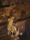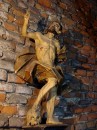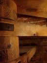 Pięć kondygnacji ceglanej wieży wypełniają drewniane konstrukcje, solidne belki, platformy i niesamowite schody. Dębowe, grube bale, pamiętające czasy jezuitów, wzbudzają zachwyt nie tylko swoją solidnością, ale niezwykłą prostotą konstrukcji. Sprawiają wrażenie wachlarza rozpiętego wokół pionowej belki – osi wieży. Z półmroku wyłaniają się figury „płaczek”, rzeźby Chrystusa Frasobliwego, Archanioł depczący szatana. Małe figurki zdają się być przebudzone światłem flesza.