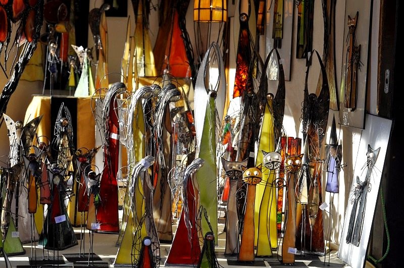 Dużą popularnością cieszą się tradycyjne wyroby rękodzieła – koronkowe serwety a nawet koronkowe zasobniki na toaletowy papier. Prawdziwą atrakcją są poruszające się na wietrze ozdoby wykonane z metalu. Chyba z uwagi na cenę, przy stoisku z nietypowymi ozdobami ustawiło się więcej oglądających, niż kupujących.