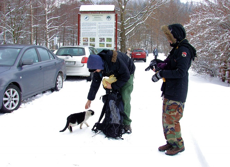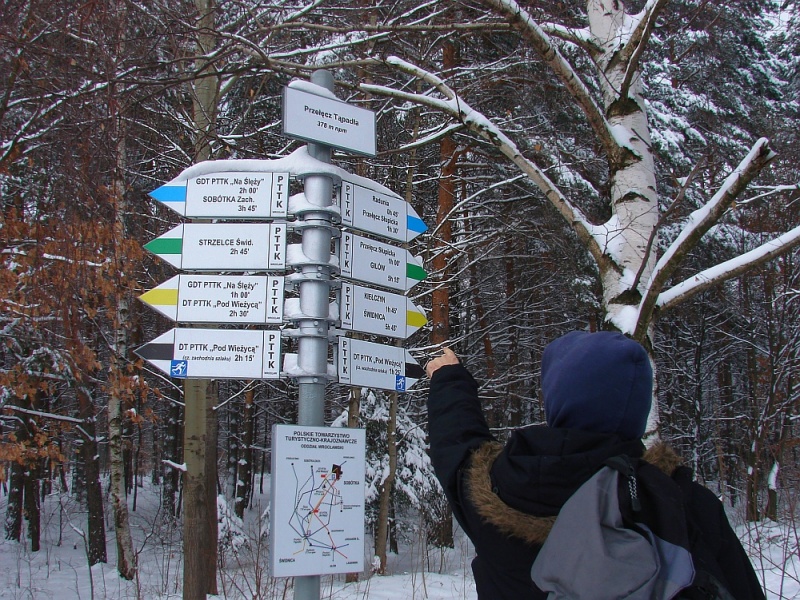 Pierwszy kwietnia przywitał wrocławian zimową aurą. Święta Wielkanocne były bardziej białe od Świąt Bożego Narodzenia. Mimo niezbyt zachęcającej do spacerów aury, w rejonie Przełęczy Tąpadła, na „zimowym” szlaku na Ślężę, pojawiło się sporo turystów. Leśny parking był zatłoczony.