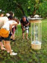 Obiekt przypominał kształtem klepsydrę, z tym, że zamiast piasku w szklanych słojach była woda.