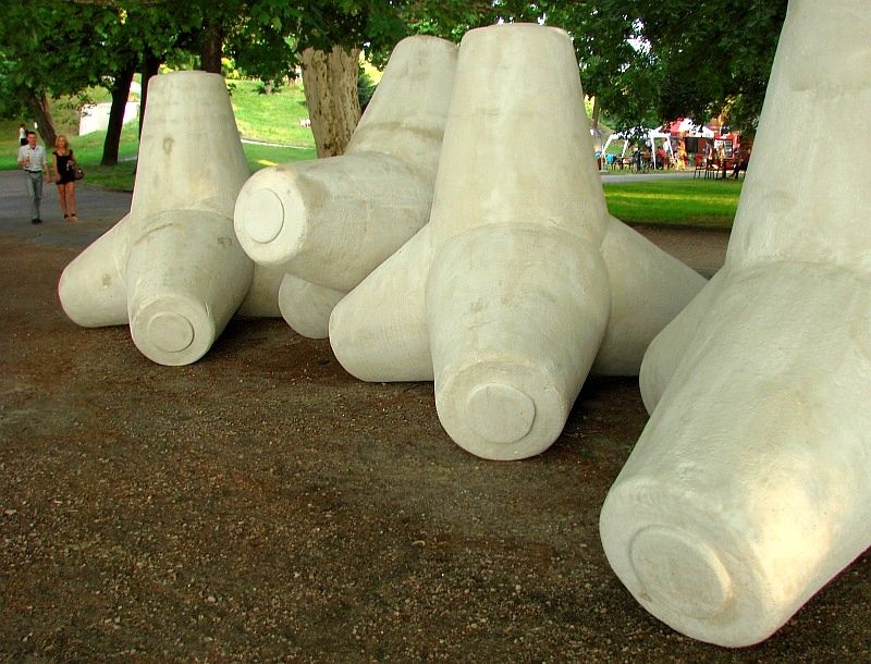Gdyby nie tabliczki można by pewne przypadkowe obiekty, jak butelka na stosie cegieł, z której wyciekała woda, przyjąć także za dzieło sztuki. A może to był przejaw artystycznego geniuszu? Wszak to woda była lejtmotywem tegorocznego Survivalu.