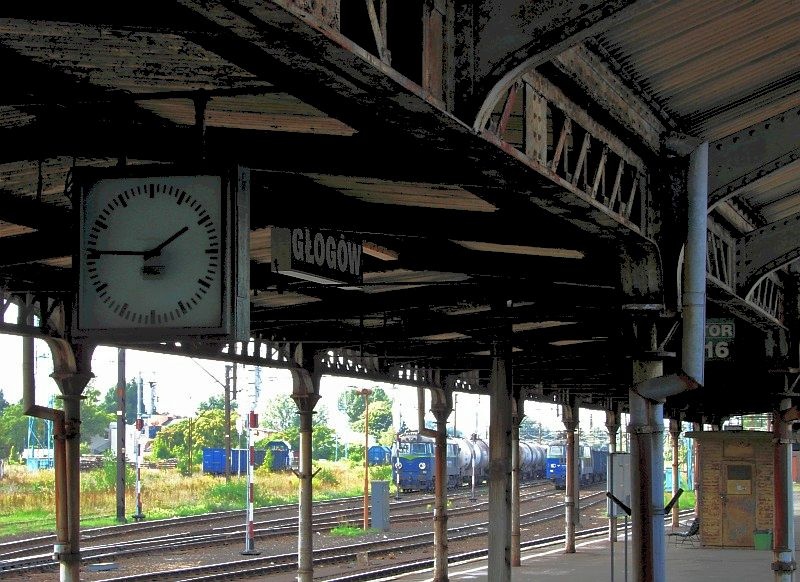 Widok peronu przypomina czasy głębokiej komuny. Ba! Nawet gorzej! Do wyjścia trzeba pokonać wysokie schody. Zadaszony i całkiem fotogeniczny łącznik z budynkiem dworca straszy wybitymi szybami. I nagle szok! Drzwi na fotokomórkę. Świetlik w dachu. Czyściutka toaleta. Spartańska, schludna poczekalnia. Front budynku wyraźnie odnowiony, chociaż obiekt tradycyjnego dworca nie przypomina. Brakuje szyldu informującego, że stoimy przed dworcem PKP Głogów Główny.