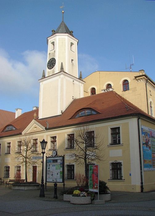 Widać włożone w miasteczko nie tylko pieniądze, ale i troskę dobrego gospodarza. Godzina 15. Na ulicach pusto. Trudno sobie wyobrazić, że gęstość zaludnienia wynosi tutaj przeszło 1000 osób na km2. Krótki spacer wokół ratusza zakończyłam optymistyczną refleksją, że w mieście będącym jednym z głównych ośrodków przemysłowych Legnicko-Głogowskiego Okręgu Miedziowego mieszkańcy są w pracy.