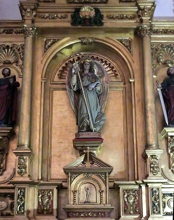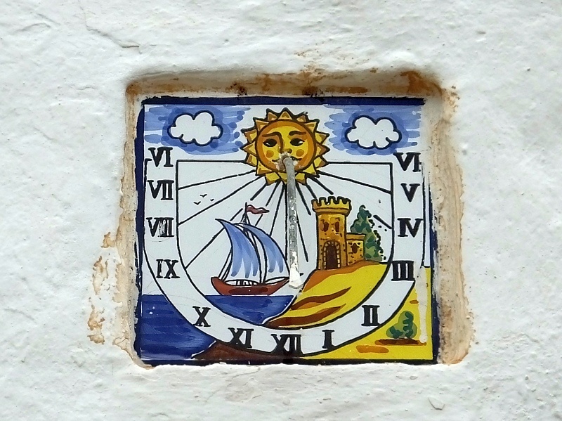 Na surowych, białych murach kościoła nie ma ozdób. Tym większym zaskoczeniem jest widok malutkich, jakby wrośniętych w ścianę kafli. Na jednym portret Santa Catalina, na drugim kolorowy motyw o tematyce marynistycznej. Naniesione rzymskie cyfry sugerują, że może to być także zegar słoneczny. Niestety, przy całkowitym zachmurzeniu nieba, nie sposób sprawdzić jego punktualności.
