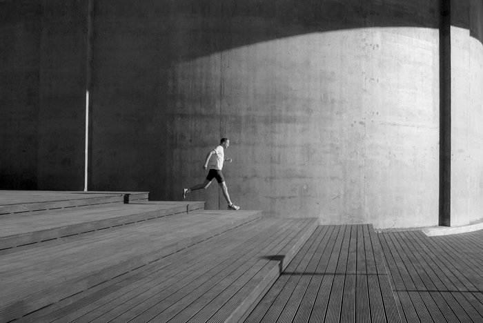 Architektura odwiedzonych miast, przedstawiona w czarno-białej fotografii, potrafi zachwycić swoją elegancją i prostotą. Kompozycja kadrów podkreśla estetykę, harmonię i symetrię geometrycznych budowli. Sylwetka człowieka, chociaż postrzegana jedynie jako graficzny znak na tle szerszego planu, podnosi betonową dżunglę do rangi przestrzeni ujarzmionej do życia.