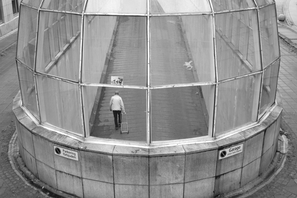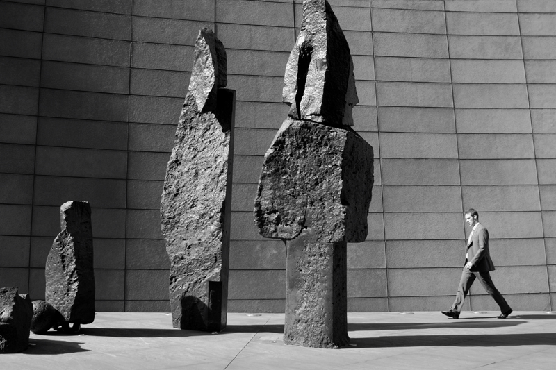 Photography emotions can be different things to different people, but I think that the works of Jean-Mark Carracci must appeal to all of us, because they make us think about the coexistence between a “urban being” and his concrete environment. The monumental buildings and constructions surrounding a man show a symbiotic relationship that exists in nowadays world. I think that the artist puts the emphasis on the integration of a “urban being” with the artificial environment he lives in. It doesn’t matter in which European city we are, because we cannot recognize the country. The similarity of cities and people rushing in their daily life make us feel the solitude of a man, who seems even not to notice how far from the nature he is. He doesn’t mind living in the concrete jungle, because he has created it by himself. He knows how to move there, because he got used to it. The photos reflect and mirror the urban civilization in which still the most important is a “human being” who is becoming a “urban being” living in a prison of the architecture.