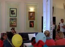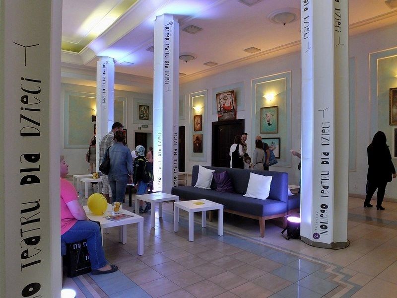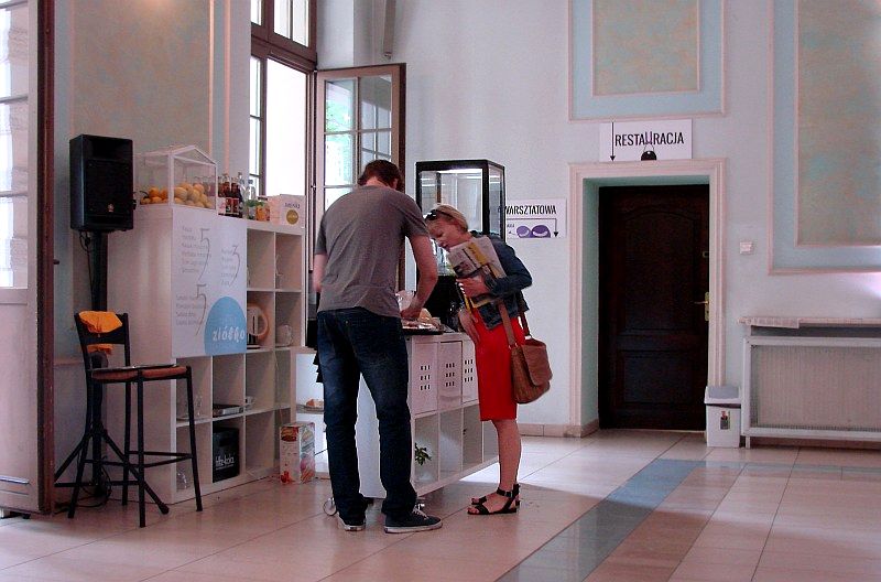 W tym pięknie zaaranżowanym pomieszczeniu można było obejrzeć fantastyczne obrazy o bajkowej tematyce, odpocząć i przegryźć małe co nieco przygotowane przez Restaurację Niezłe Ziółko (usytuowaną w miejscu dotychczasowej Restauracji Teatralnej). Pomysł umieszczenia w sali wystawowej wygodnych kanap świadczy nie tylko o dbałości Gospodarzy o samopoczucie gości, ale i o zrozumieniu potrzeb rodziców i dzieci, które równie szybko zapalają się do zabawy, jak i nią męczą. Możliwość zmiany otoczenia, wyciszenia się, przejścia od fizycznej aktywności do kontemplacji barwnych ilustracji pozwoliła dzieciom i dorosłym na „długodystansowe” uczestnictwo w imprezie.