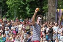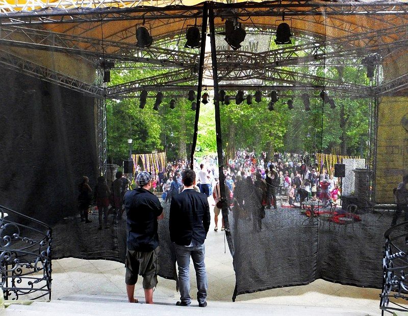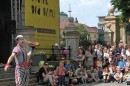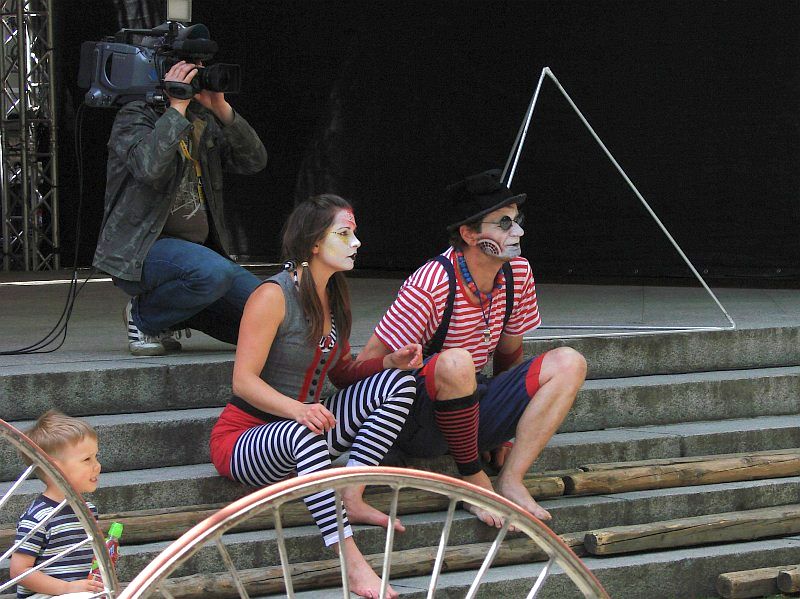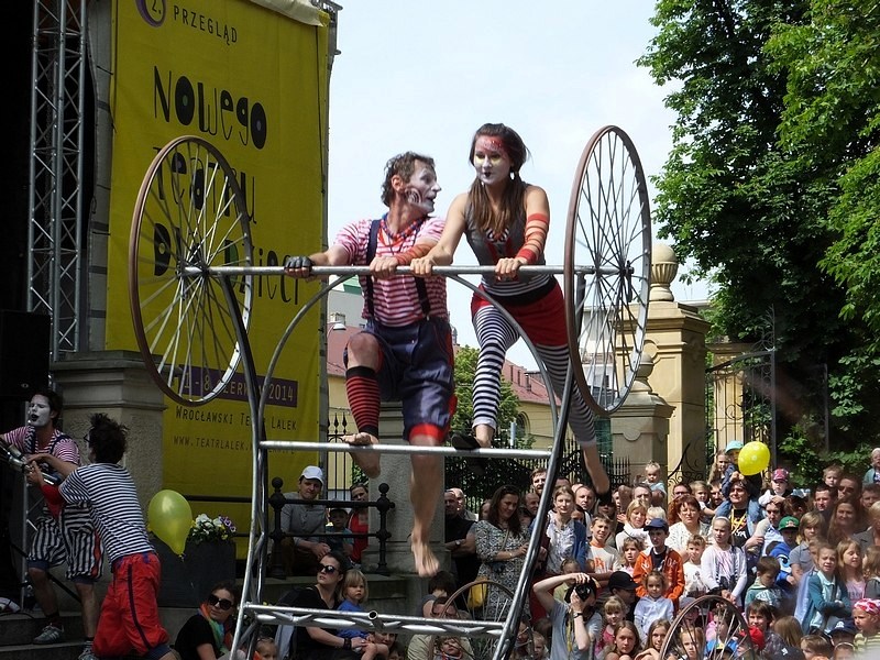 O godz. 14 rozpoczęło się widowisko, które przez godzinę skupiało uwagę dzieci i dorosłych. Artyści Teatru V.O.S.A z czeskiej Pragi przenieśli widzów w świat sztuki, w której marzenia się spełniają i wszystko jest możliwe dzięki konsekwencji i pracy zespołowej. Głównymi rekwizytami przedstawienia okazały się belki, które, rozrzucone w nieładzie, zdawały się początkowo być miejscem do zabawy dla dzieci, utrudniającym nieco przechodzenie i przejazd wózkami.