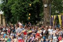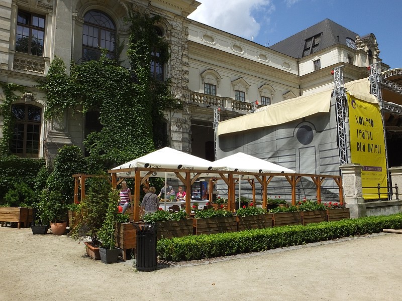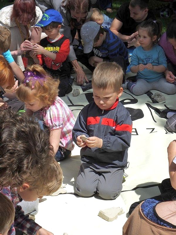 I zaczęło się. W cieniu starych drzew, na gęstej, zielonej trawie rozgościły się dzieciaki pragnące poznać tajniki sztuki ceramicznej. W Sali Kolumnowej przygotowano wystawę obrazów, rzeźb i instalacji Roberta Romanowicza – artysty grafika i ilustratora współpracującego z Wrocławskim Teatrem Lalek.