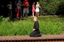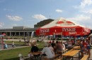 To już nie jest spokojne miejsce, zatopione w zieloności. Gra muzyka, kolorowe parasole krzyczą reklamami piwa, głos prezentera (tym razem sztuk kulinarnych) miesza się w powietrzu z głosem konferansjera na scenie.