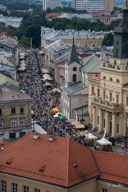 Urodę Lublina najlepiej ocenić „z lotu ptaka”, a konkretnie z Wieży Trynitarskiej będącej dawną furtą łączącą kościół Jezuitów z miastem. Dzisiaj Wieża jest siedzibą Muzeum Archidiecezjalnego i na wysokości 40 metrów posiada taras widokowy, do którego prowadzi zbudowana z cegły, wąska klatka schodowa z 207 schodami. Warto je pokonać, bo z góry roztacza się wspaniały widok na dachy lubelskich kamienic, wieże kościołów, parki, wieżowce nowych osiedli i stojący na wzgórzu zamek będący wyjątkową ozdobą miasta. Zbudowany przez Kazimierza Wielkiego, na przestrzeni setek lat był świadkiem ważnych dla Polski historycznych wydarzeń, ale także pełnił funkcję więzienia carskiego, w czasie drugiej Wojny Światowej więzienia hitlerowskiego, a w latach 50. polityczno-śledczego. Obecnie ta górująca nad miastem, jasna budowla w stylu angielskiego neogotyku jest siedzibą Muzeum Lubelskiego.