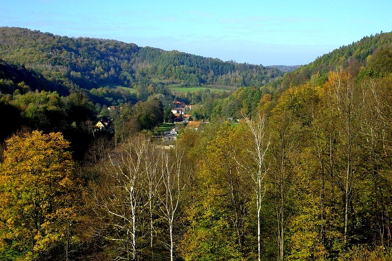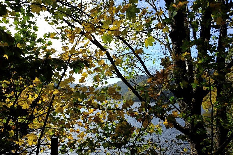 Zapraszam na jesienny spacer wzdłuż brzegu Jeziora Lubachowskiego, które powstało po zbudowaniu w latach 1912-1917 zapory wodnej na Bystrzycy. Atrakcją w najbliższej okolicy jest most linowy, przystań jednostek pływających i zamek Grodno.