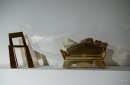 Prace Mendiniego zaskakują. Przedmioty codziennego użytku zostały tu wyniesione do rangi sztuki, pokazane w niecodzienny, oryginalny sposób, skłaniający odbiorcę do zastanowienia się nad istotą takiego przekazu. Jest to charakterystyczne dla twórczości architekta, który wyraża pogląd, że w dziedzinie desingu wszystko już było, wszystko zostało powiedziane i teraz pozostaje jedynie przetwarzanie przedmiotów zaprojektowanych wcześniej. Mendini robi to w sposób ironiczny, jak gdyby puszczał oczko do odbiorcy. Kochając eklektyzm, miesza style, formy, kolory, faktury, dzięki czemu powstają przedmioty nieprzypisane historycznie żadnej epoce i miejscu. Ich użytkową banalność Mendini równoważy kolorem czy rozmiarem – męska marynarka, lampa, kapelusz czy but zostały „obdarowane” nie tylko ponadprzeciętnymi rozmiarami, ale i pokryte złotymi płytkami, które błyszczą w świetle halogenów.