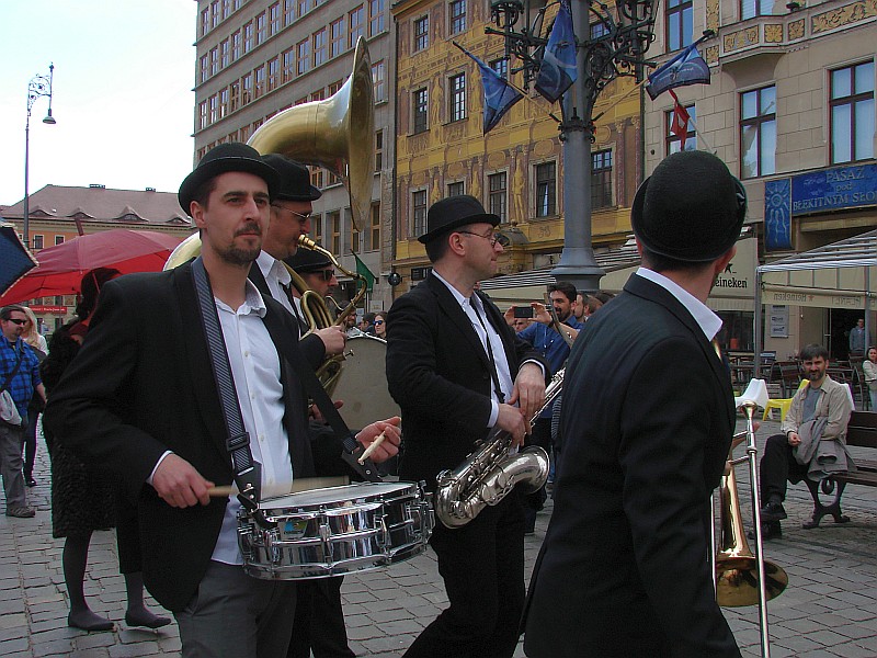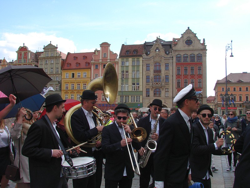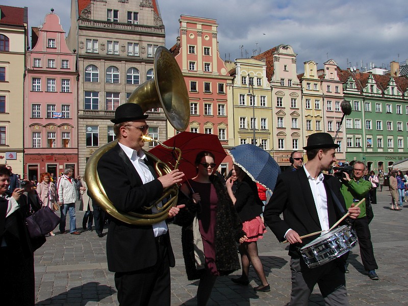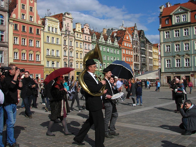 W przedostatni dzień Festiwalu Jazz nad Odrą, wokół wrocławskiego ratusza przeszedł barwny tłum wiedziony muzyką jazzową. Parada Jazzowa wpisuje się w koloryt miasta. Muzycy, aktorzy, mimowie przyciągali uwagę przechodniów, których nie brakowało na rynku w pogodną niedzielę.