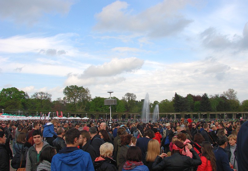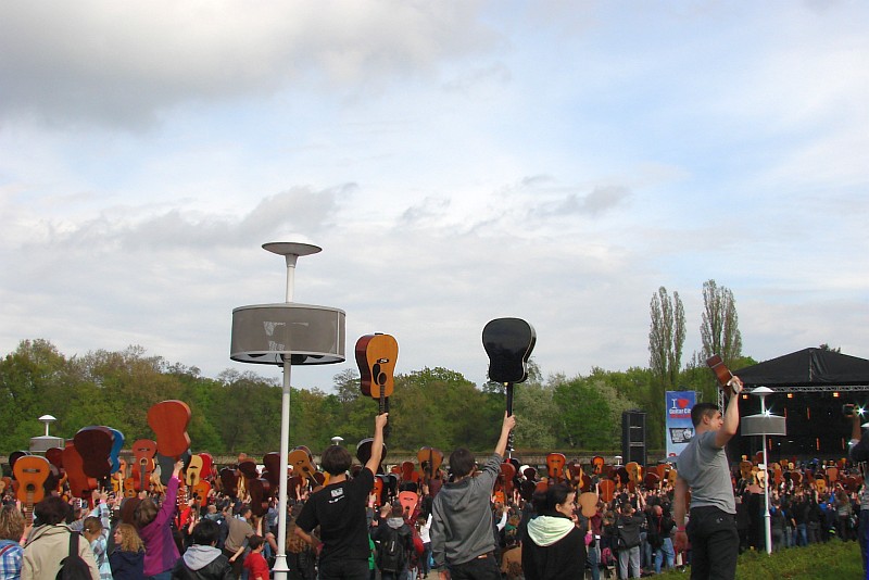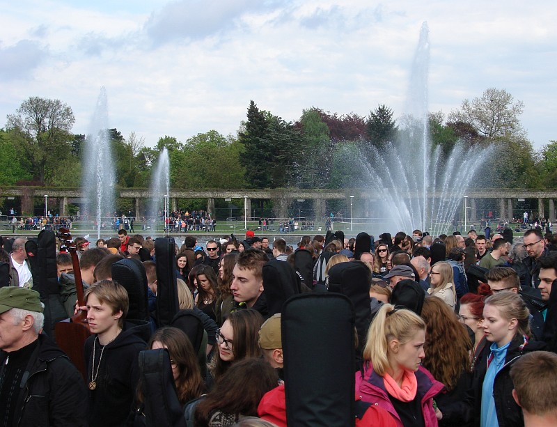 Dyskusyjny jest wybór nowego miejsca na coroczne spotkanie gitarzystów. Zielony teren rekreacyjny wokół Hali Stulecia, to głównie alejki i pas trawników wokół stawu z fontannami. Nic zatem dziwnego, że po wspólnym zagraniu niezapomnianego utworu Jimiego Hendrixa uczestnicy plenerowej imprezy rozeszli się. Na spragnionych czekały budki z piwem, na głodnych muzyki koncerty w Hali Stulecia. Sporo przyjezdnej młodzieży ruszyło na zwiedzanie miasta.