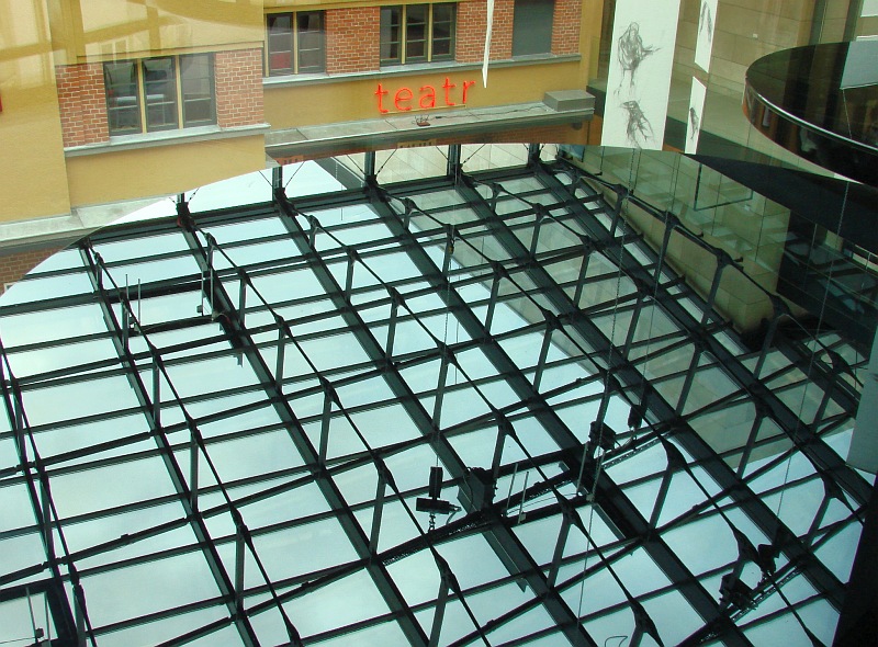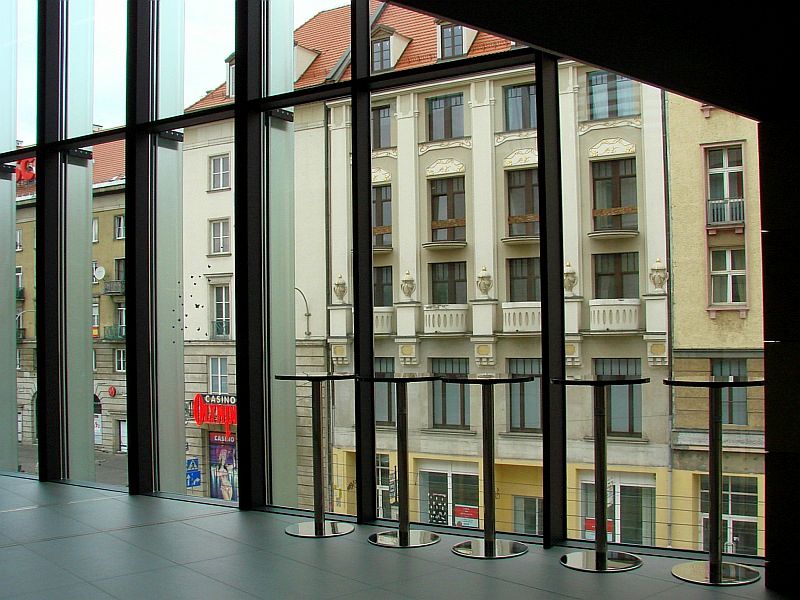 Oczywiście, to żart. Przede wszystkim lubię fotografować ciekawe architektonicznie dzieła. A do takich niewątpliwie należy wrocławski Teatr Muzyczny Capitol. Co więcej? To jeden z nielicznych (jeśli nie jedynych) obiektów, z którego można zrobić zdjęcia okolicznej, miejskiej zabudowy… przez szyby. Czyste!