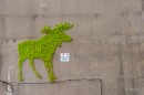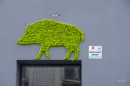 Przedstawicieli leśnej fauny wykonano ze strukturalnego, ekologicznego mchu, który w naturalny sposób reaguje na warunki atmosferyczne – samoczynnie się nawadnia podczas deszczu lub czerpie wilgoć z powietrza. Żywy, zielony kolor mchu przyciąga wzrok przechodniów, którzy bez problemu rozpoznają charakterystyczne kształty zwierząt. Na ścianach znalazły się sylwetki wilka, bobra, jelenia, sarny, bażanta, łosia, orła bielika, zająca i dzika.