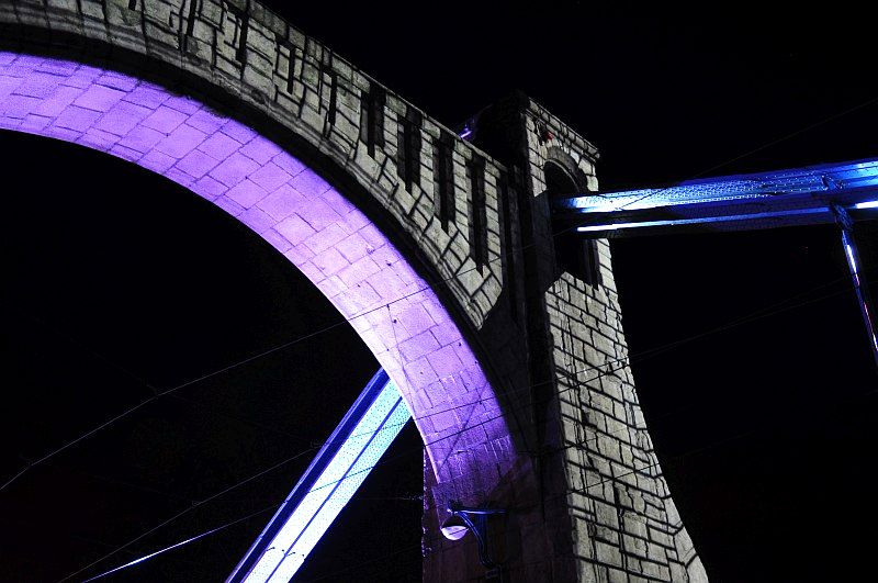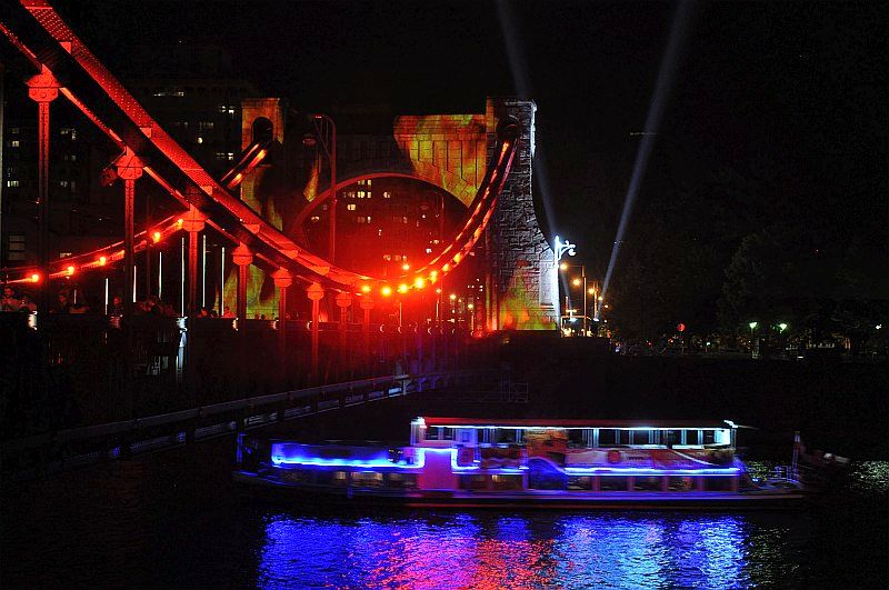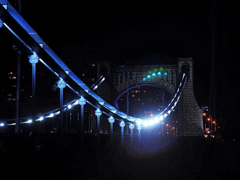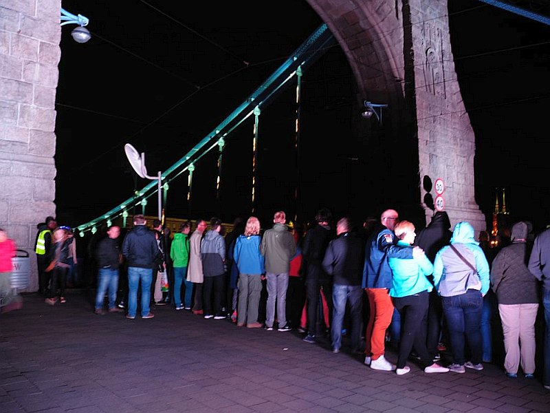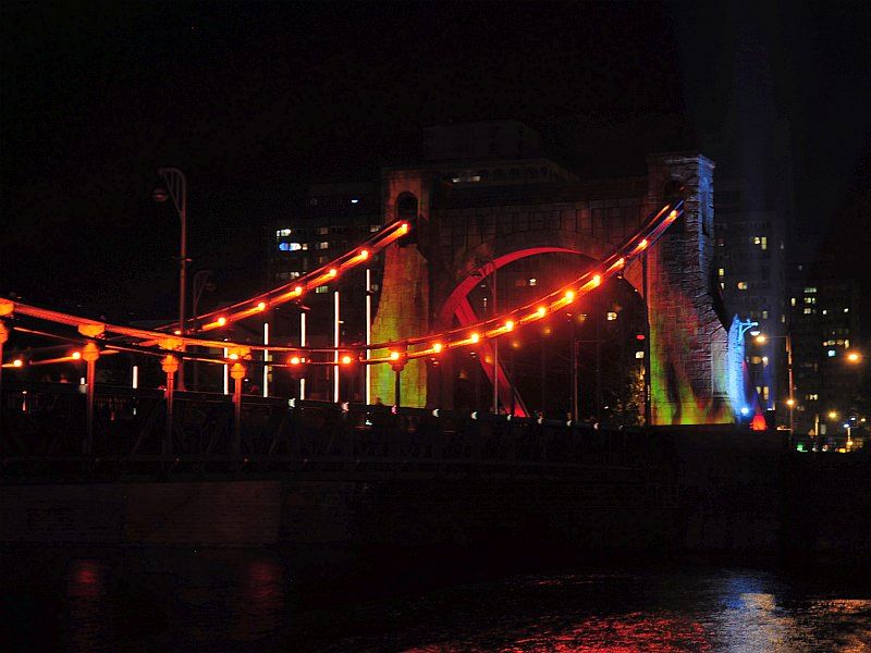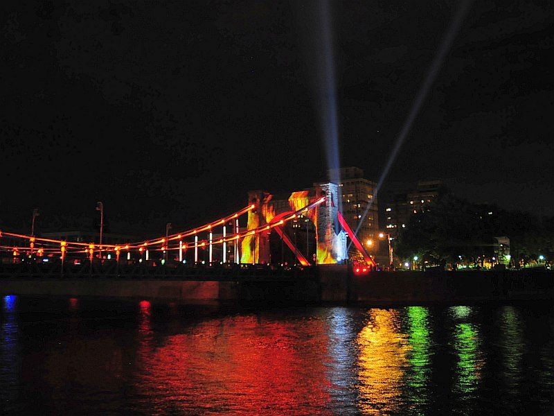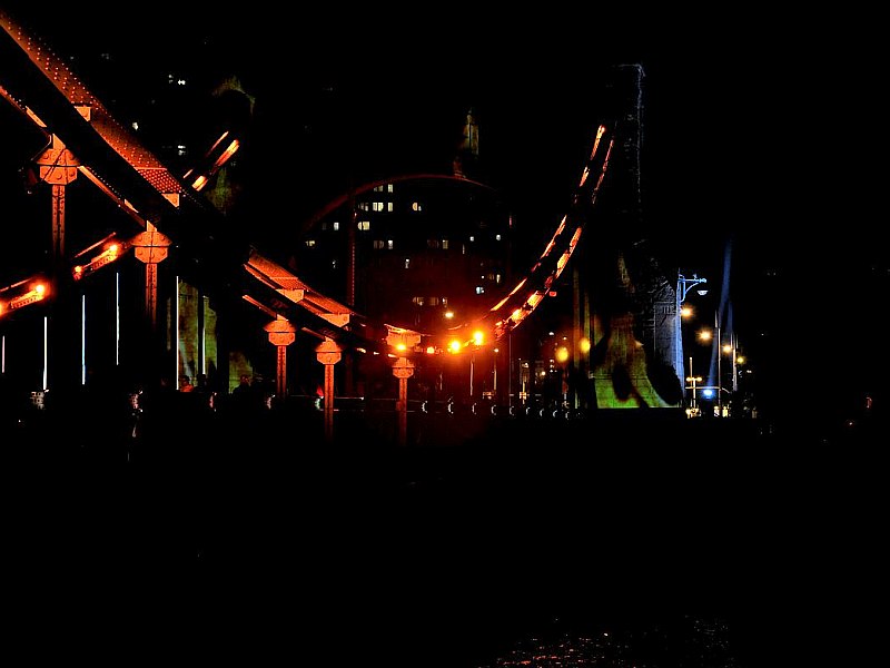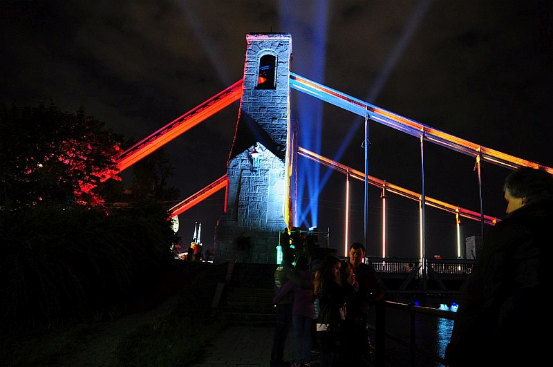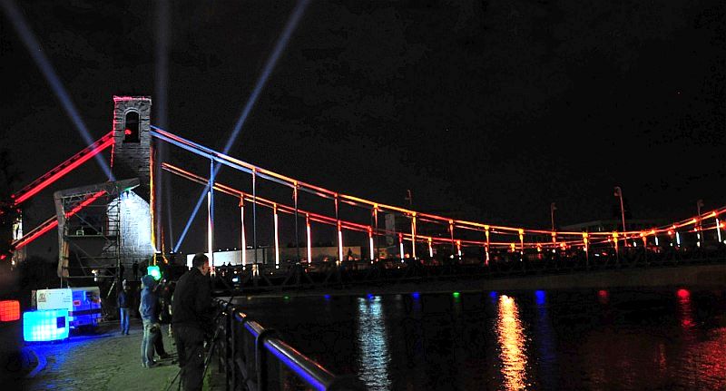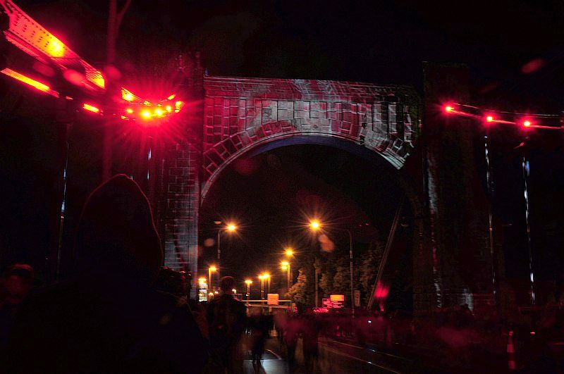 W tym samym czasie na wysokich pylonach mostu wyświetlano nawiązujące do historii obrazy i symbole. Duży ruch na moście utrudniał obserwowanie wizualnych projekcji a z daleka efekty świetlne były jedynie kolorowym zarysem mostu.