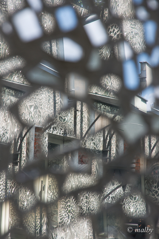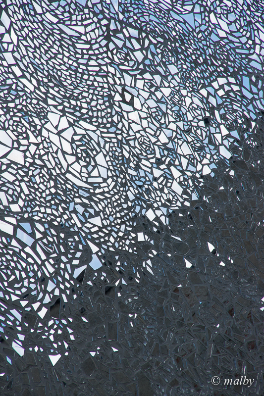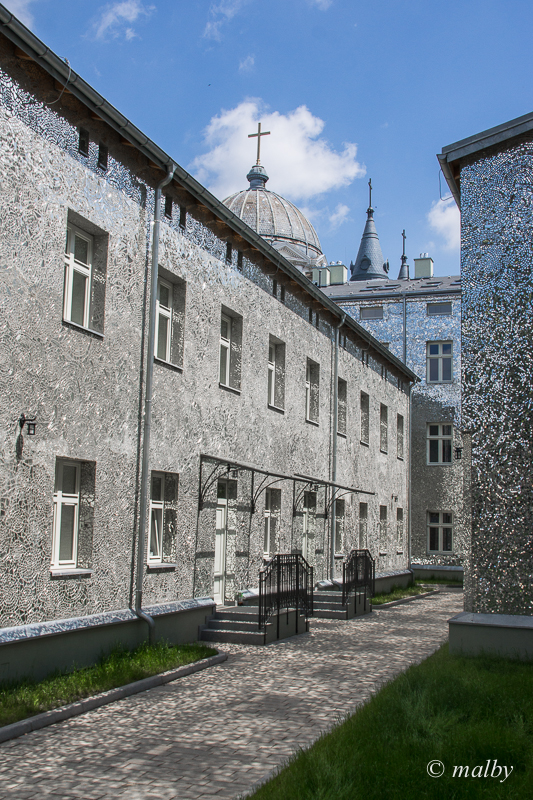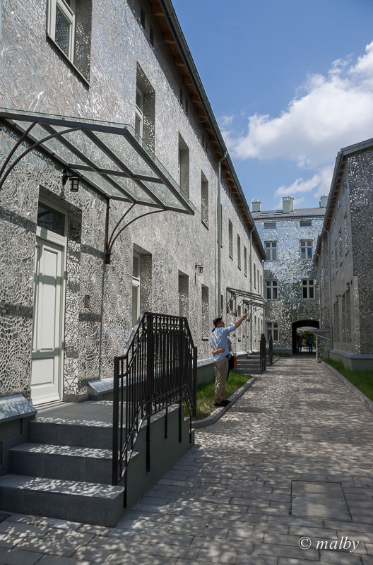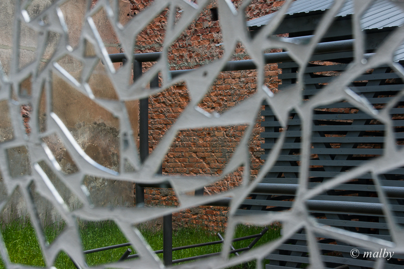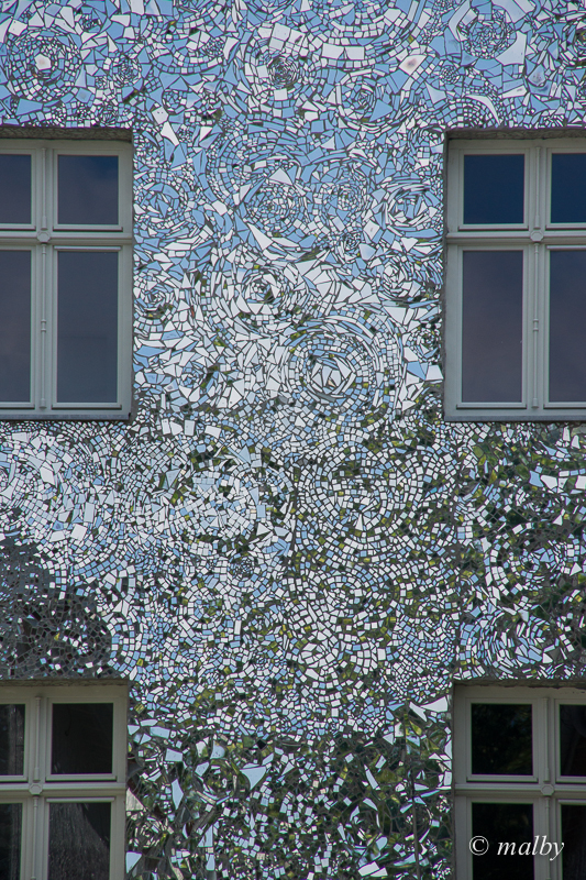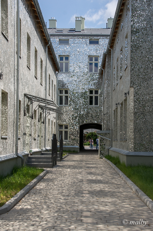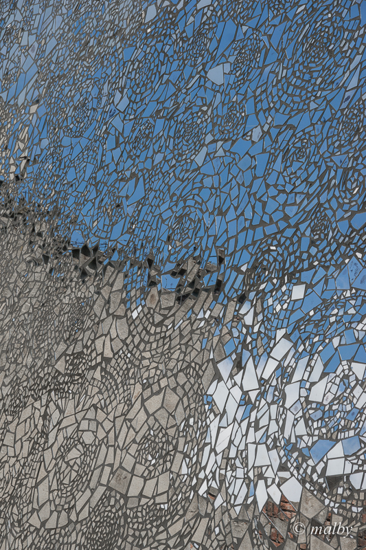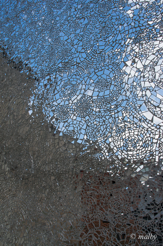 Lśniąca powierzchnia wprowadziła w ciemne podwórko dużo światła i blasku, a migoczące „zajączki” wysyłane przez tysiące kawałeczków luster tworzą magiczną, surrealistyczną atmosferę. Odwiedzając Łódź warto przejść się tędy i obserwując „potrzaskane” odbicia błękitnego nieba, zielonych trawników i własnej postaci, pomyśleć jak ważne jest widzenie – czynność bez której trudno żyć.