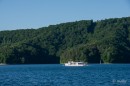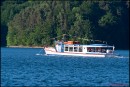Sezon urlopowy w pełni. Wypoczywających w Bieszczadach zachęcam do zarezerwowania czasu na rejs statkiem „Tramp”, który jest jedną z kilku jednostek pływających po Zalewie Solińskim. Solidny, wyposażony w silną turbinę wycieczkowiec, dysponuje 50 miejscami siedzącymi, dachem osłaniającym pasażerów przed deszczem czy słońcem i kapokami w razie wypadku. Jednak nie ma się czego obawiać, bo za kołem sterowym stoi prawdziwy wilk morski, a właściwie dwa wilki, właściciele „Trampa”, kapitanowie Jan Zajda i Tadeusz Gurgul. Są znanymi w środowisku Polańczyka wodniakami, pływają na zmianę, a podczas rejsu barwnie opowiadają o Zalewie, podkreślając atmosferę puszczanymi przez głośniki szantami. Podczas, gdy pasażerowie obserwują i fotografują krajobraz, kapitanowie opowiadają ciekawostki i historię dotyczącą tych terenów.