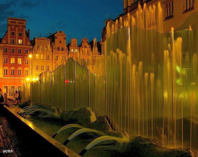 - Wrocław, Fontanna Multimedialna, Pracownia Projektowa Archad – Artur Moryson, 2009, wieczorem