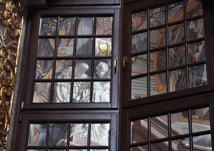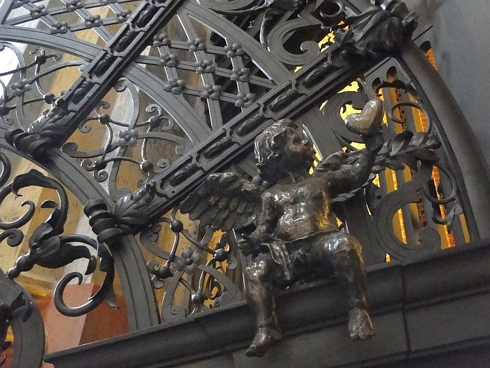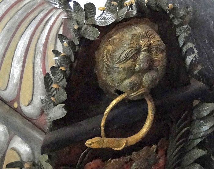 Piękne wnętrze z misternie rzeźbionymi detalami. Zastanawia mnie rodzaj trumny (?) ze zdjęcia 82 – te ostre, szpiczaste elementy na wieku to taki rodzaj ozdoby? Kojarzy mi się z kolcami na ptaki na parapetach okien :/