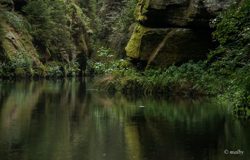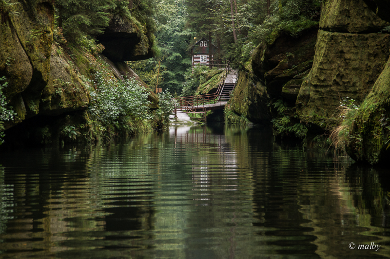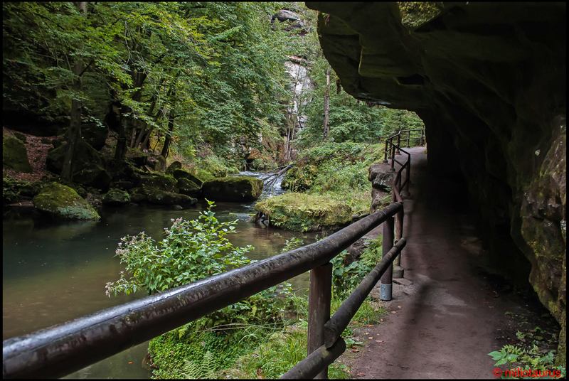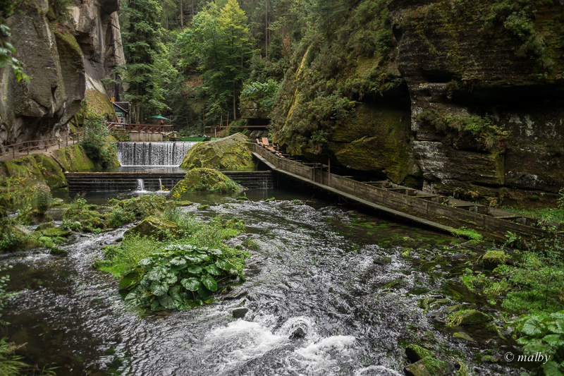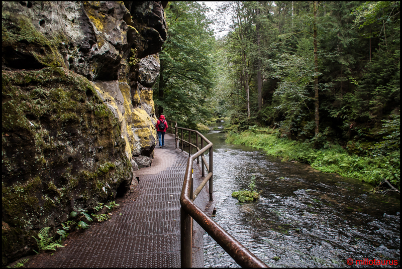 Bez względu na pogodę, spacer wąwozem dostarcza dużej przyjemności. Wysokie na 150 metrów skały, ciekawa roślinność, rześkie powietrze i wygodna ścieżka (szlak żółty) to główne atuty. Trasa zaczyna się w Hrensku, gdzie kupujemy bilet wstępu i dostajemy mapkę okolicy. Po około 20 minutach spokojnej wędrówki, dochodzimy do przystani. Tu czekają łodzie i przewoźnicy. Podczas kilkunastominutowego „rejsu” opowiadają oni, po czesku, niemiecku lub angielsku, historię terenów, podają nazwy charakterystycznych skał i atrakcji umieszczonych na trasie, takich jak Wodnik siedzący na brzegu i „wodospad” uruchamiany sznurkiem.