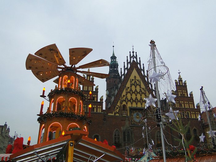 Jest taki dzień w roku, w którym wieża wrocławskiego ratusza znika ze staromiejskiego krajobrazu. No, prawie znika i to tylko na zdjęciach z żabiej perspektywy. Średniowieczny ratusz przysłaniają dekoracje kolejnej edycji Jarmarku Bożonarodzeniowego.