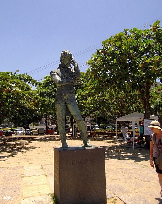 La tre fama Pola komponisto Chopin meditas antaŭ la malgranda Ruĝa plaĝo.
