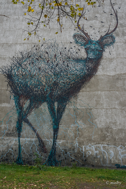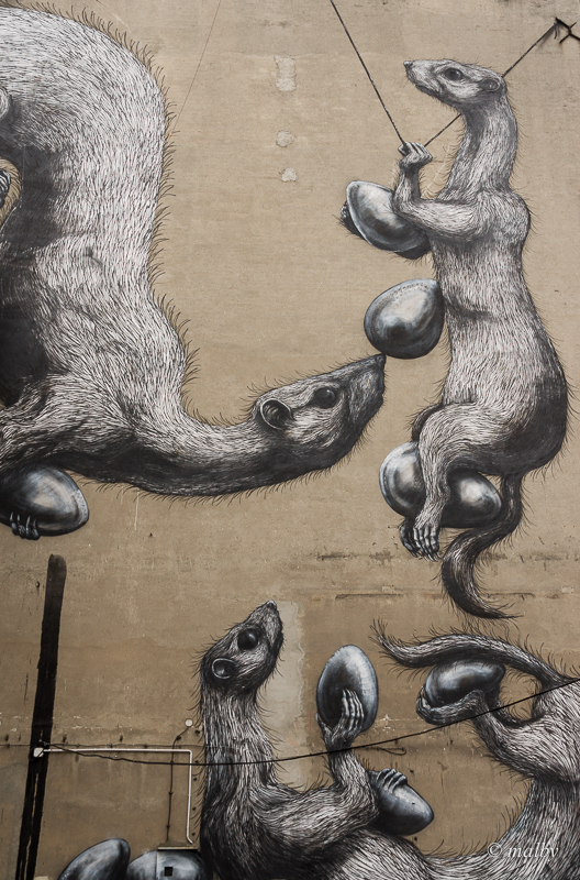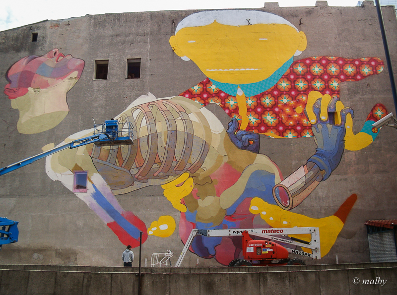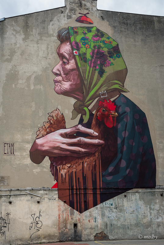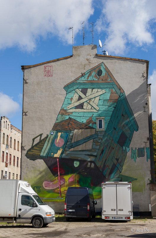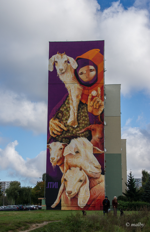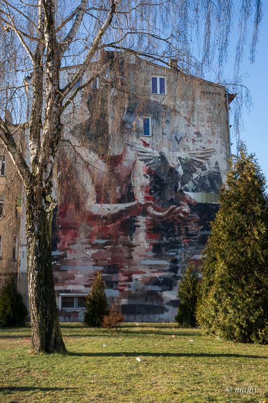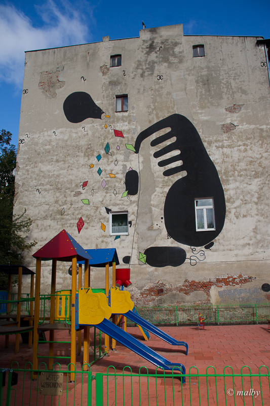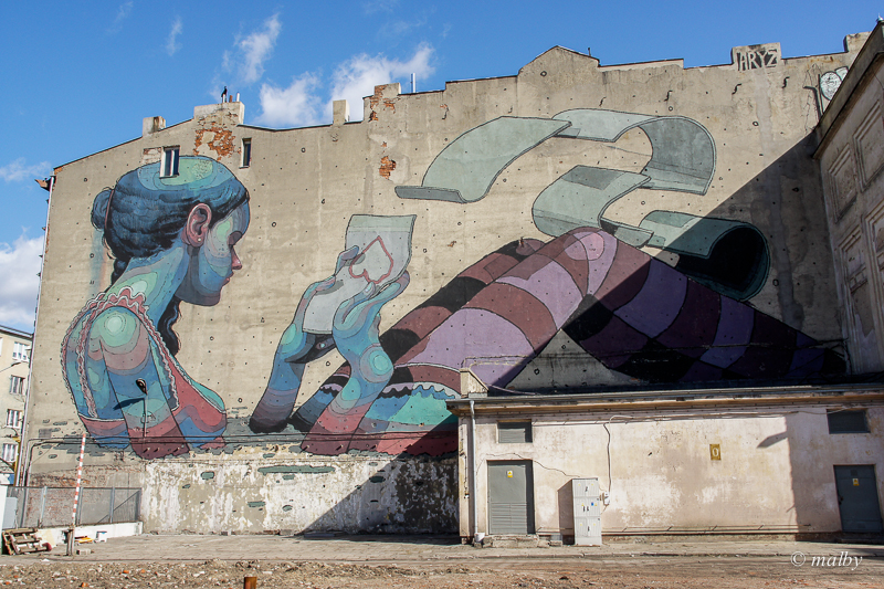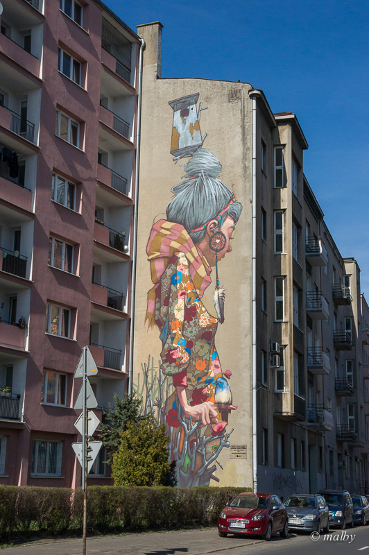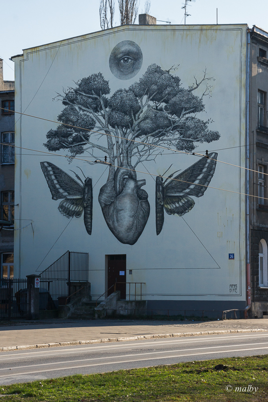 Z tymi tytułami to ciężka sprawa, rzadko który artysta street-artu nadaje tytuły swoim pracom, niektórzy podobno tego wręcz nie lubią, np. ARYZ. Chociaż jego mural namalowany na Pomorskiej 67 aż się prosi o tytuł „List miłosny”, to tylko mieszkańcy i turyści tak nazywają ten mural, ARYZ się od tego odcina. Z prac, których zdjęcia zamieściłam kilka ma oficjalne tytuły, np. INTI’ego, DIAZa, DALEASTa i ETAMA, pozostałe to wolne interpretacje oglądających. Ale ponieważ są trafne, funkcjonują prawie oficjalnie 🙂