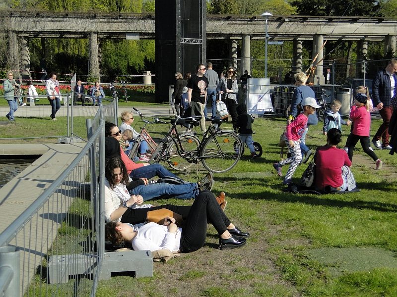 Dobrze się złożyło, że wypadła akurat sobota i na rozległe tereny rekreacyjne wokół Hali Stulecia, gdzie zorganizowano muzyczne koncerty, przybyły całe rodziny. Na letniej scenie wystąpił m.in. zespół z Wrocławia Funky New Orleans, który wciągnął do muzycznej zabawy kilkupokoleniową widownię.