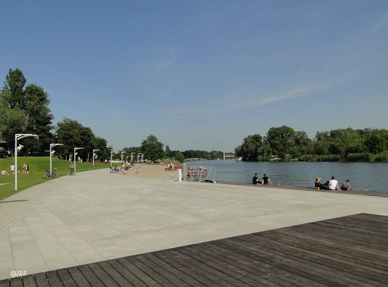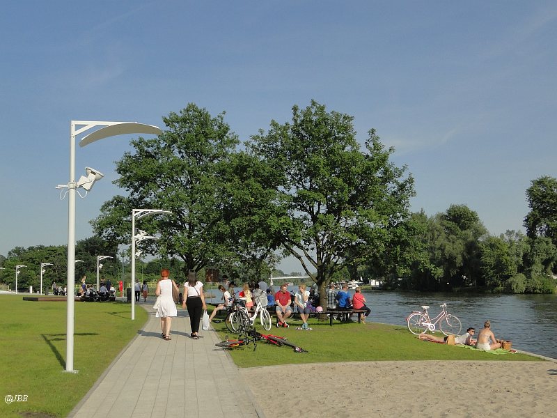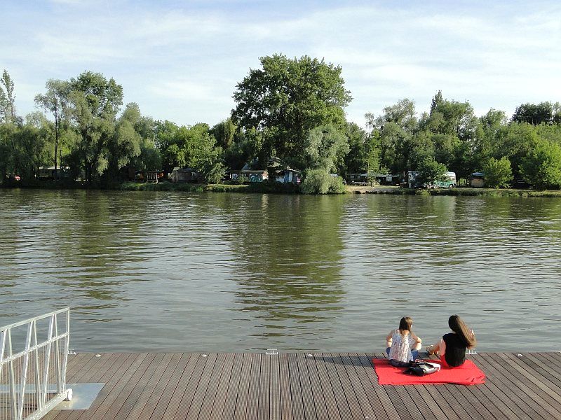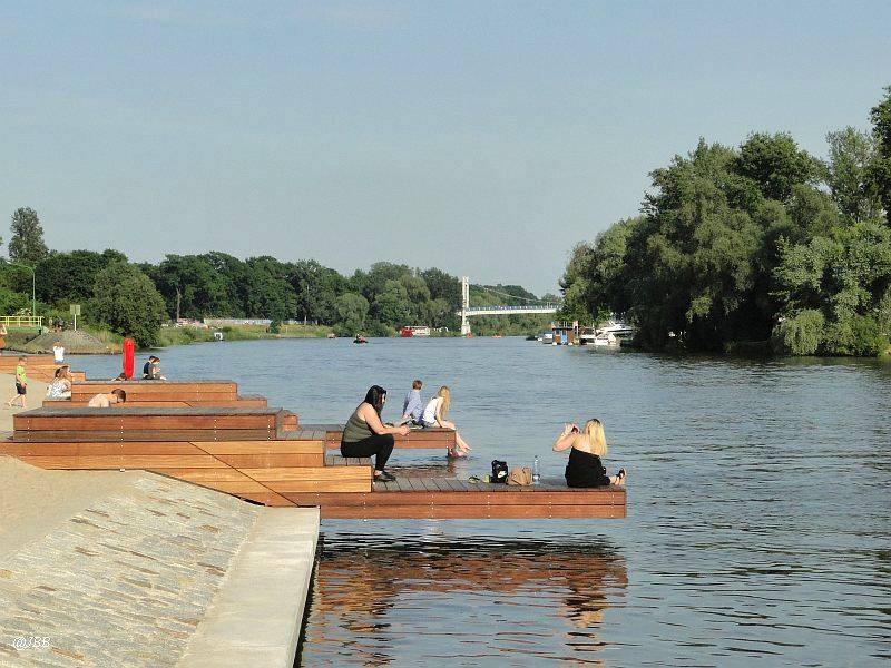 Jest estetycznie, schludnie i już tłoczno na ławkach, pływających pomostach i betonowych schodkach.