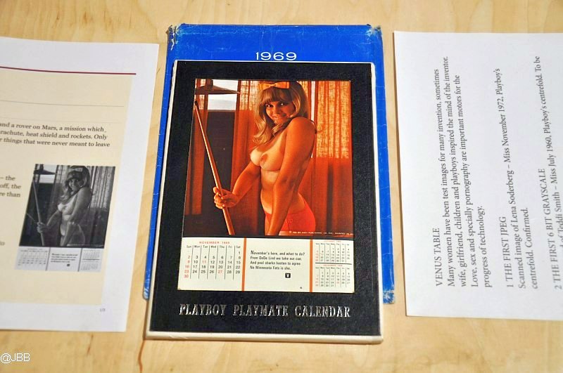 Autorka uparcie sprawdza w kilku źródłach wiarygodność zdobytej informacji, jednak asekuracyjnie wstawia podtytuł wystawy „Chyba, że okaże się inaczej”. Zatem jeśli można zaufać jej odkryciom, to pierwszym jpeg-iem jest skan rozkładówki „Playboya” z listopada 1972.